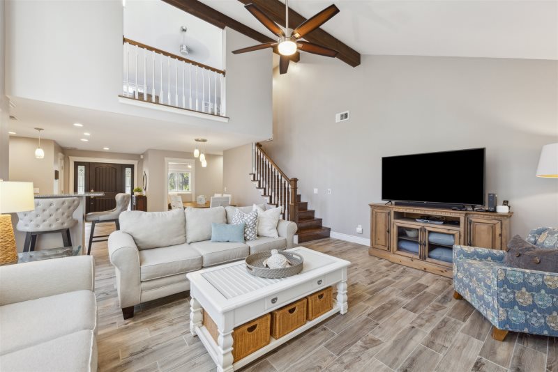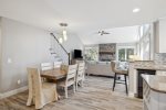 This home boasts 2,100 sq ft of beautifully appointed interiors with walls of windows offering loads of natural light and tranquil views. The main floor offers a living room with comfy couches,flat panel TV, a spacious dining area and full kitchen complete with modern appliances and everything you may need to prepare snacks between beachtime or sumptuous seafood feasts at the end of the day. An expansive outside patio with a BBQ grill offers spacious and private outdoor living for dining , or drinks while you enjoy coastal breezes.