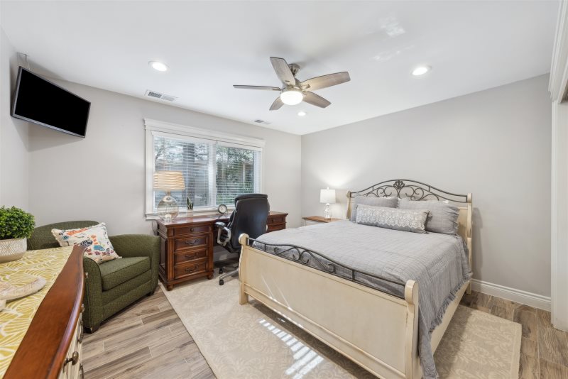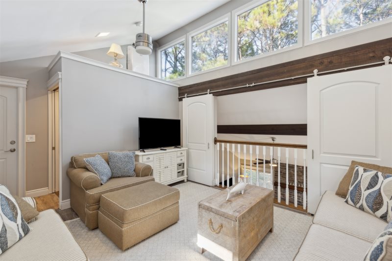 Upstairs, in the loft, you will find an additional seating area for reading, enjoying the smart TV or just a place to spread out for an evening card game. Forgot your clubs? No problem, the owners have provided three sets of clubs for your use! No promises on whether they will improve your game, but maybe! Kids will love the lighted, full height basketball goal in the driveway. NBA stars are welcome!
