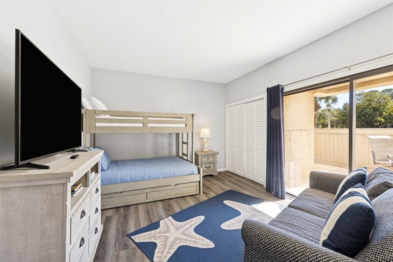 ** Trundle / Bunk bed has been removed and replaced with a queen. Guest bedroom has a small sleeper sofa, and living area also has a sleeper sofa.